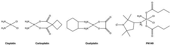- Schoch, S.; Sen, V.; Gajewski, S.; Golubev, V.; Strauch, B.; Hartwig, A.; Köberle, B. Activity profile of the cisplatin analogue PN149 in different tumor cell lines. Biochem. Pharmacol. 2018, 156, 109–119. [Google Scholar] [CrossRef] [PubMed]