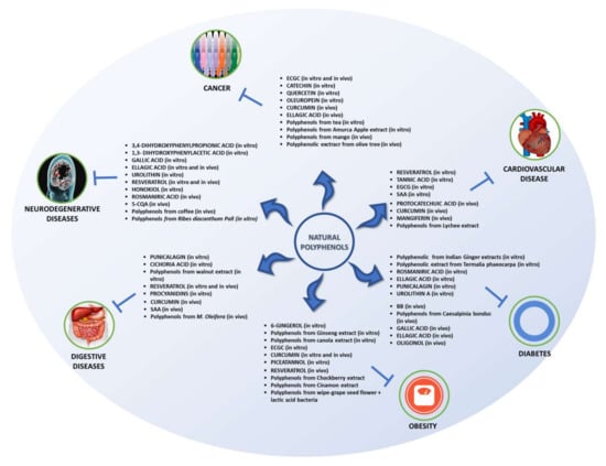 The health benefits of polyphenols present in our diet has spiked interest among researchers in the last few years [4,5,6]. Therefore, the objective of this review is to elucidate the bioavailability, pharmacological properties, and pathways that polyphenols act upon to enable us to use these compounds as concomitant treatments or even as prophylactics of multiple pathologies.