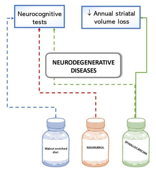 Antioxidant activity, anti-inflammatory, and neuroprotective properties of polyphenols allow us to consider them as promising candidates in preventing and treating neurodegenerative diseases. Nevertheless, evidence is scarce on the neuroprotective or therapeutic effects in human intervention trials.
