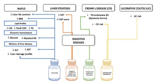 - Rahmani, S.; Asgary, S.; Askari, G.; Keshvari, M.; Hatamipour, M.; Feizi, A.; Sahebkar, A. Treatment of Non-alcoholic Fatty Liver Disease with Curcumin: A Randomized Placebo-controlled Trial. Phytother. Res. 2016, 30, 1540–1548. [Google Scholar] [CrossRef]