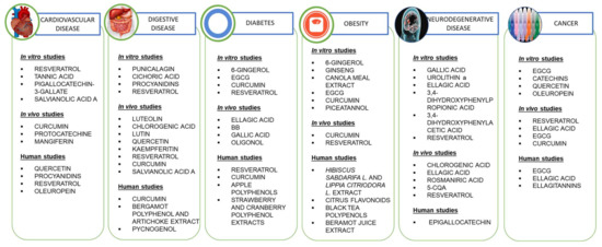 In the following paragraphs, we outline the most relevant studies performed in the last five years regarding polyphenols and their potential pharmacological effects (see Supplementary Material for search criteria and methodology).