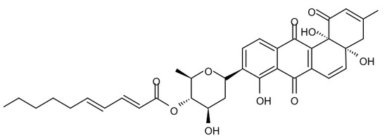 - Liang, Y.; Xie, X.; Chen, L.; Yan, S.; Ye, X.; Anjum, K.; Huang, H.; Lian, X.; Zhang, Z. Bioactive polycyclic quinones from marine Streptomyces sp. 182SMLY. Mar. Drugs 2016, 14, 10. [Google Scholar] [CrossRef] [PubMed]