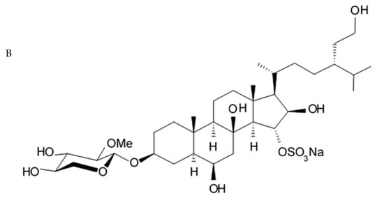 - Ma, N.; Tang, H.F.; Qiu, F.; Lin, H.W.; Tian, X.R.; Zhang, W. A new polyhydroxysteroidal glycoside from the starfish Anthenea chinensis. Chin. Chem. Lett. 2009, 20, 1231–1234. [Google Scholar] [CrossRef]