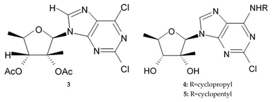 - Searle, P.A.; Molinski, T.F. Trachycladine-A and trachycladine-B-2′-C-methyl-5′-deoxyribofuranosyl nucleosides from the marine sponge Trachycladus laevispirulifer. J. Org. Chem. 1995, 60, 4296–4298. [Google Scholar] [CrossRef]