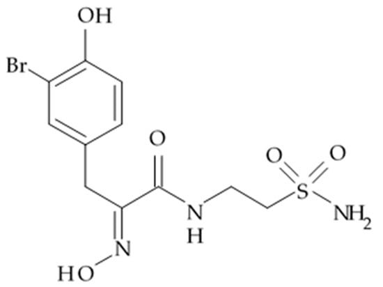 - Hoshino, O.; Murakata, M.; Yamada, K. A convenient synthesis of a bromotyrosine derived metabolite, psammaplin A, from psammaplysilla sp. Bioorg. Med. Chem. Lett. 1992, 2, 1561–1562. [Google Scholar] [CrossRef]