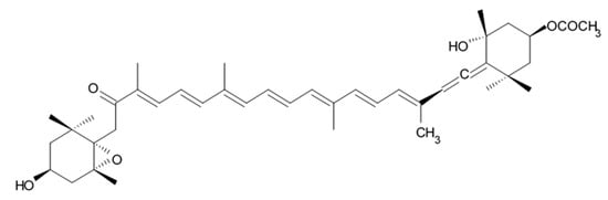 - Mikami, K.; Hosokawa, M. Biosynthetic pathway and health benefits of fucoxanthin, an algae-specific xanthophyll in brown seaweeds. Int. J. Mol. Sci. 2013, 14, 13763–13781. [Google Scholar] [CrossRef]