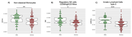 | % of non-classical monocytes | 0.288 | 0.18 | 0.000–29.826 | 0.908 | 1.712 | 0.000–0.000149 |