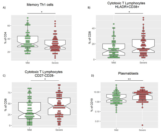 - Gil-Etayo, F.J.; Suàrez-Fernández, P.; Cabrera-Marante, O.; Arroyo, D.; Garcinuño, S.; Naranjo, L.; Pleguezuelo, D.E.; Allende, L.M.; Mancebo, E.; Lalueza, A.; et al. T-Helper Cell Subset Response Is a Determining Factor in COVID-19 Progression. Front. Cell. Infect. Microbiol. 2021, 11, 79. [Google Scholar] [CrossRef] [PubMed]