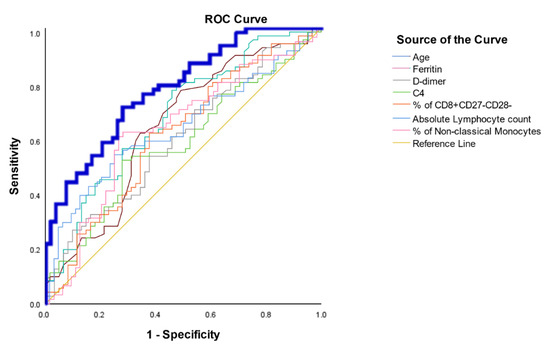 Chicago/Turabian StyleSan Segundo, David, Francisco Arnáiz de las Revillas, Patricia Lamadrid-Perojo, Alejandra Comins-Boo, Claudia González-Rico, Marta Alonso-Peña, Juan Irure-Ventura, José Manuel Olmos, María Carmen Fariñas, and Marcos López-Hoyos. 2021. "Innate and Adaptive Immune Assessment at Admission to Predict Clinical Outcome in COVID-19 Patients" Biomedicines 9, no. 8: 917. https://doi.org/10.3390/biomedicines9080917
