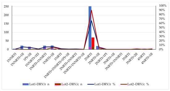 The description of the cohort, according to associated ARV and as number and type of therapeutic classes, for each group, is shown in Figure 2.