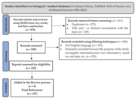 - Page, M.J.; McKenzie, J.E.; Bossuyt, P.M.; Boutron, I.; Hoffmann, T.C.; Mulrow, C.D.; Shamseer, L.; Tetzlaff, J.M.; Moher, D. Updating guidance for reporting systematic reviews: Development of the PRISMA 2020 statement. J. Clin. Epidemiol. 2021, 134, 103–112. [Google Scholar] [CrossRef] [PubMed]