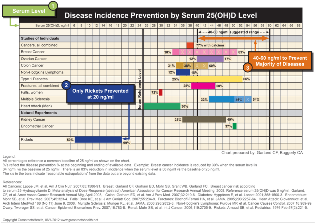 Disease Incidence Prevention by serum 25(OH)D levels. [] (Used with permission).