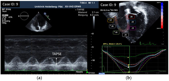 19. Koestenberger, M.; Ravekes, W.; Everett, A.D.; Stueger, H.P.; Heinzl, B.; Gamillscheg, A.; Cvirn, G.; Boysen, A.; Fandl, A.; Nagel, B. Right ventricular function in infants, children and adolescents: Reference values of the tricuspid annular plane systolic excursion (TAPSE) in 640 healthy patients and calculation of z score values. J. Am. Soc. Echocardiogr. 2009, 22, 715–719. [Google Scholar] [CrossRef]