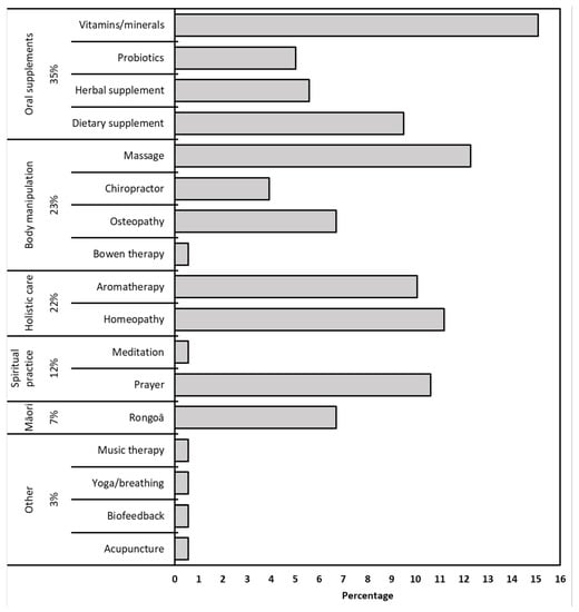 CAM; prevalence; disclosure; homeopathy; holistic; spiritual; Rongoā Māori; chronic; prescription; conventional medicine 1. Introduction