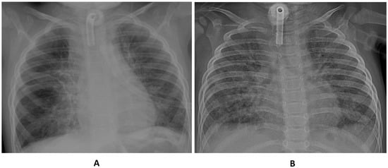 Chest X-ray pulmonary aspect before infusion 1 (A) and infusion 5 (B) of mesenchymal stromal cells.