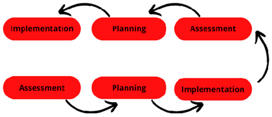 Evaluating the assessment tools and reflecting on their utility in planning is called “meta-assessment”, and it is fundamental to keep an open path between planning and assessment [25,29]. A straight connection between planning and assessment implies a bidirectional exchange of information [11,13]. So, planning should constantly inform the assessment about the main goals and execution criteria to fulfill [11]. Concomitantly, this information might result in a deeper reflection on assessment: whether the criteria are adjusted to the learners, and whether the assessed content is related to established planning goals [24]. Doing so, sport practitioners are working on building appropriate learning environments. Appropriateness emerges as a concept whose application varies depending on the individuals and the context in which they operate, and build their sporting identity [30].