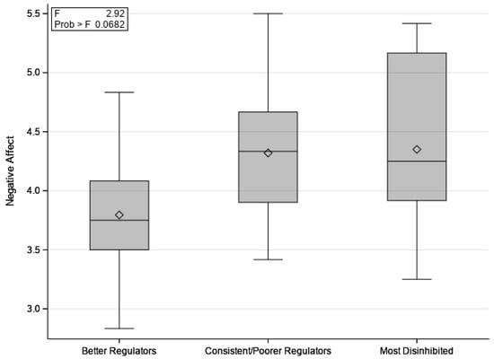 Means of children’s negative affect for “Better Regulators” (n = 15), “Consistent/Poorer Regulators” (n = 12), and “Most Disinhibited” (n = 11) groups.