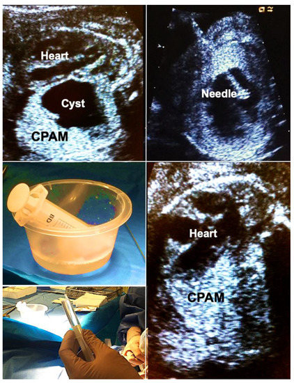 - Lee, F.L.; Said, N.; Grikscheit, T.C.; Shin, C.E.; Llanes, A.; Chmait, R.H. Treatment of congenital pulmonary airway malformation induced hydrops fetalis via percutaneous sclerotherapy. Fetal Diagn. Ther. 2012, 31, 264–268. [Google Scholar] [CrossRef]
