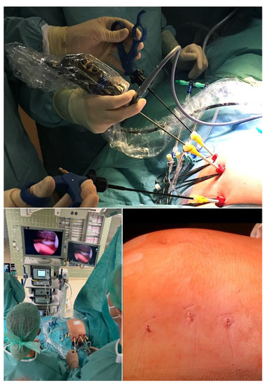 - Chmait, R.H.; Monson, M.A.; Pham, H.Q.; Chu, J.K.; Van Speybroeck, A.; Chon, A.H.; Kontopoulos, E.V.; Quintero, R.A. Percutaneous/mini-laparotomy fetoscopic repair of open spina bifida: A novel surgical technique. Am. J. Obstet. Gynecol. 2022, 227, 375–383. [Google Scholar] [CrossRef]
