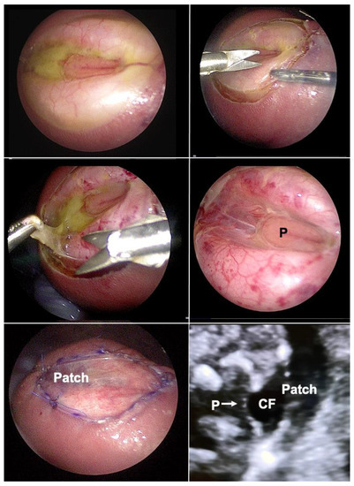 - Dębska, M.; Koleśnik, A.; Kretowicz, P.; Olędzka, A.; Rebizant, B.; Gastoł, P.; Dębski, R. Urethroplasty with balloon catheterization in fetal lower urinary tract obstruction: Observational study of 10 fetuses. Ultrasound Obstet. Gynecol. 2020, 56, 916–920. [Google Scholar] [CrossRef]