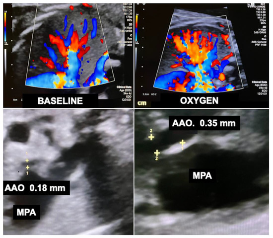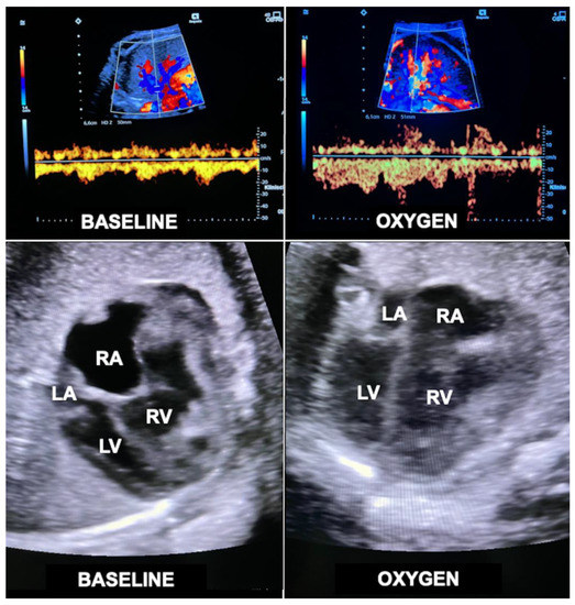 - Rasanen, J.; Wood, D.C.; Debbs, R.H.; Cohen, J.; Weiner, S.; Huhta, J.C. Reactivity of the human fetal pulmonary circulation to materno-fetal hyperoxygenation increases during the second half of pregnancy. A randomized study. Circulation 1998, 97, 257–262. [Google Scholar] [CrossRef] [PubMed]