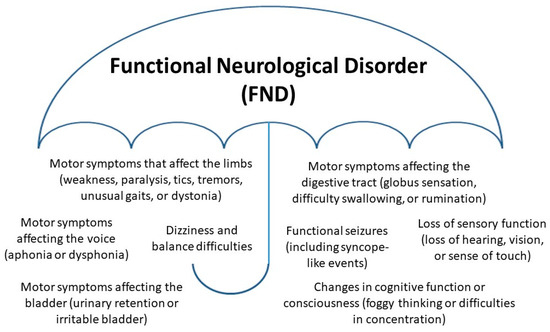 - Aybek, S.; Perez, D.L. Diagnosis and management of functional neurological disorder. BMJ 2022, 376, o64. [Google Scholar] [CrossRef] [PubMed]