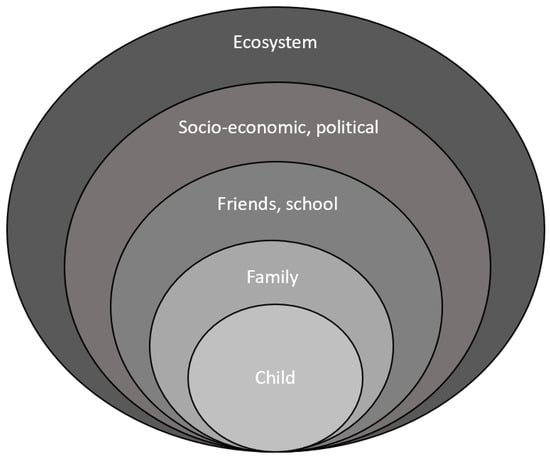 Biopsychosocial and ecological system levels. The biological psychological, socio-economic, political, and ecological system levels in which the child is embedded and that effect the child’s health and wellbeing. © Kasia Kozlowska and Olivia Schollar-Root, 2023.