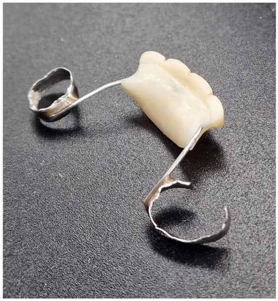 - Watson, L.; Danley, B.; Versluis, A.; Tantbirojn, D.; Brooks, J.; Wells, M.H. A structural analysis of 3D printed pediatric space maintainers. Pediatr. Dent. 2023, 45, 342–347. [Google Scholar]