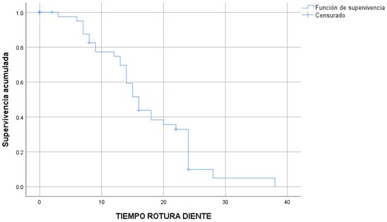 Resin tooth fractures in time (Kaplan–Meier survival estimate).