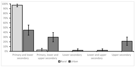 Education levels provided by the schools included in the study (percentages and 95%CIs)—Fischer’s exact test p < 0.01.