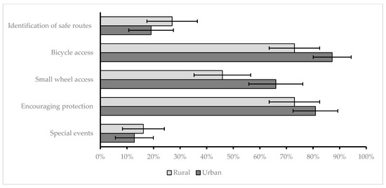 Promoting active transportation (error bars representing 95%CIs for the proportion of positive answers).