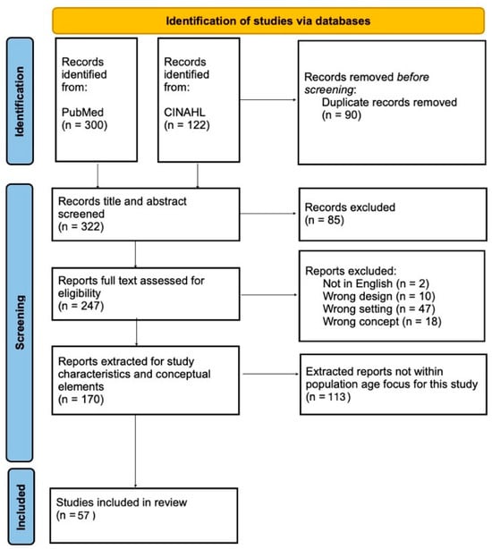To narrow the articles being reported for this manuscript, only 57 studies were retained for the narrowed inclusion criteria focusing on the pediatric population and pre-school age and school-age children (ages 1.5–18 years old).