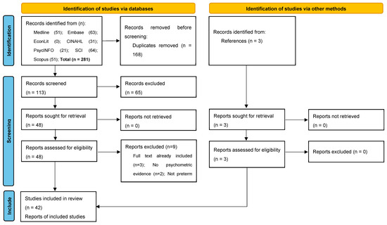 There were three main inclusion criteria: (1) The study contained evidence for at least one psychometric property (see Section 2.3 below for a list of properties) of one or more of the 14 MAUIs in any language version. (2) It targeted a PLB population (gestational age < 37 weeks and/or birthweight < 2500 g) and/or relevant proxy respondents. (3) It was published in English. Adult populations aged ≥ 18 years were included as long as the above criteria were met. Studies that did not directly assess psychometric performance but contained relevant psychometric evidence were included as ‘indirect’ assessment studies (e.g., RCT in a PLB population for evidence on responsiveness).