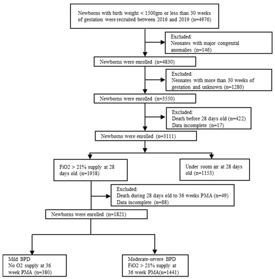 Flow chart of case enrollment. BPD, bronchopulmonary dysplasia; PMA, postmenstrual age.