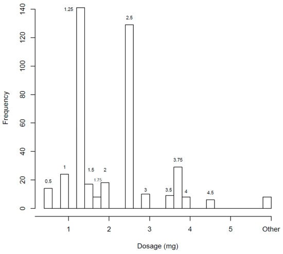 Our survey also found that the second most popular method to obtain prescribed doses of <2.5 mg was the dispersion of tablets in water to create a solution and then drawing the prescribed dose over the course the day, which was recommended by 25% of our respondents. When dissolving HC, one might assume that the medication is equally distributed in the solution. However, this is not the case, as HC is hydrophobic. This would result in the child receiving significantly varying doses, either more or less than the prescribed dose. An experiment dispersing tablets of aspirin, which is also hydrophobic, found that obtaining the target dose varied greatly depending on which zone in the container the intended dose was drawn (e.g., the base of the container (zone 1) or the top of the solution (zone 5)) [24]. Doses larger than intended were drawn from the second zone from the bottom (zone 2), sometimes reaching double the required dose. When the dose was obtained from higher zones, the extracted dose decreased, and the mean obtained dose from the top zone was only 35–50% of the intended dose [24].