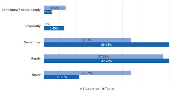 How often do you receive complaints or comments from your patients’ families about difficulty in dividing tablets vs. difficulty using suspension?