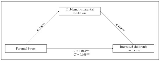 Parental stress and increased children’s media use mediated by problematic parental media use. Note: *** p < 0.001.