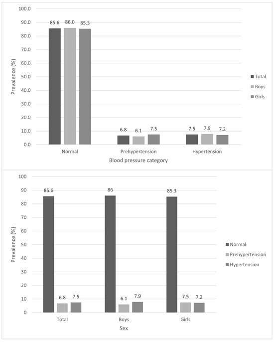 The results obtained identified some significant differences in anthropometric indicators and BP by sex. Boys had higher weight, height for age z-score, weight for age z-score, and BMI for age z-score, while girls had a higher SBP and HR. Significant differences were not found in the prevalence of the BP categories between the sexes.