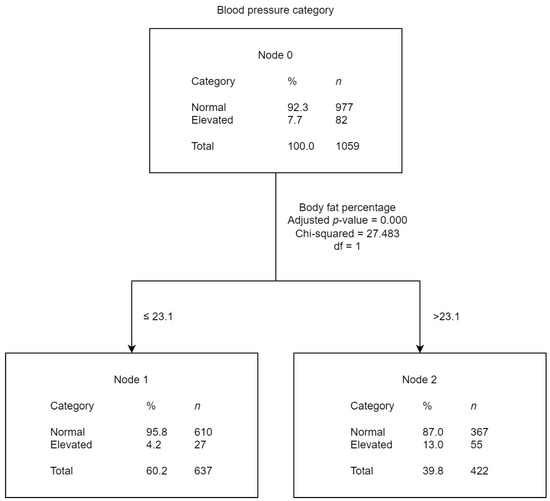 Figure 4. Blood pressure category CHAID analysis with body fat percentage as the independent variable.