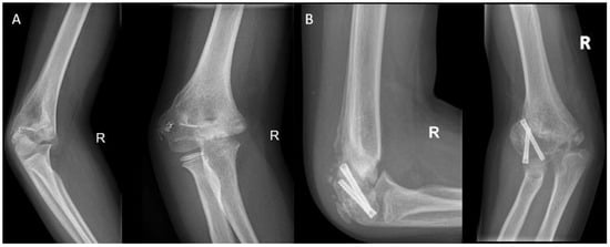 - Kumar, S.; Mishra, A.; Odak, S.; Dwyer, J. Treatment principles, prognostic factors and controversies in radial neck fractures in children: A systematic review. J. Clin. Orthop. Trauma 2020, 11, S456–S463. [Google Scholar] [CrossRef]