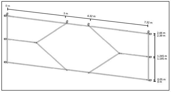 In order to improve the very simplified goal segmentation of the original DFB shot test and thus improve the measurement accuracy of the shot test, the described goal target net (Figure 1) was manufactured especially for this test. The dimensions of the target areas in the corners shown in Figure 1 are given below using the example of the upper left field: The upper side is 3 m long; the left side measures 1.14 m. The lower side, which is the boundary to the target area on the lower left, is 1.5 m long, and the diagonal side on the right is 1.86 m long. These dimensions now result in a target area size of 2.57 m2—i.e., less than half the size of the target fields from the DFB’s goal shot test, which are 5.95 m2 in size.