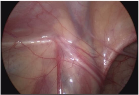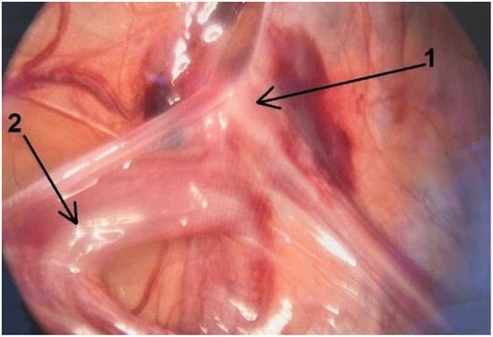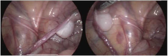 The incidence of cryptorchidism among full-term newborns ranges from 1.0 to 4.6% at the time of birth []. Palpable forms of cryptorchidism are present in 73 to 90% of affected boys, while the testicle resides in a nonpalpable position in 10 to 27% of patients [,,,,,]. In half of the patients suffering from nonpalpable cryptorchid testes, the testes are located intra-abdominally. Most of the remaining patients suffer from testicular regression syndrome. Surgical intervention in cryptorchidism aims to correct the position of the cryptorchid testis, and the deferent duct can serve as a guiding structure when locating the testicle during surgery [,,,,].