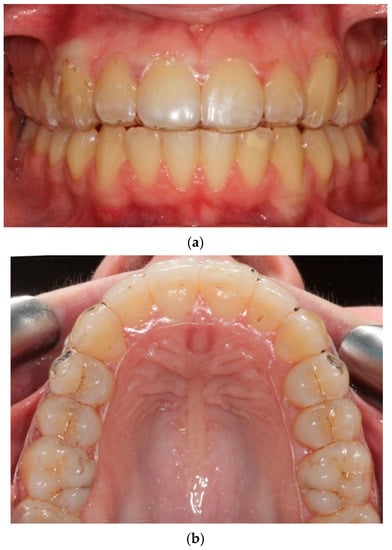 - Birdsall, J.; Robinson, S. A case of severe caries and demineralisation in a patient wearing an essix-type retainer. Prim. Dent. Care 2008, 15, 59–61. [Google Scholar] [CrossRef]