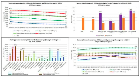 Stunting and overweight prevalence among children under five years of age in the EMR income groups [20].