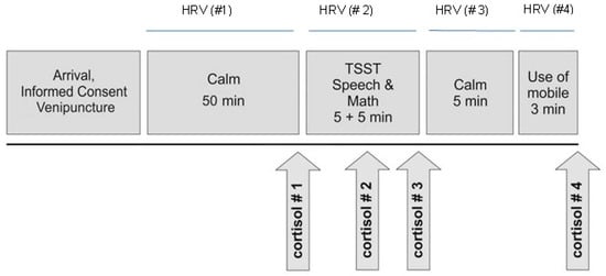 In a previous study, we investigated the HPA axis response 10 and 20 min after mental stress and/or a cell phone call []. However, the HPA axis in parallel with the ANS (HRV) dynamics and complexity during consecutive extrinsic stimuli have not been investigated yet. Furthermore, the effects of low-grade inflammation or baseline circulating cortisol in this situation have not been evaluated either. In this study, we aimed to cover the above stated gaps: to detect not only the HPA axis and ANS dynamics of the acute stress response during consecutive external stimuli, such as a combined mental task and a cellular phone call in childhood and early puberty, but also to examine the possible modulating influence of baseline low-grade inflammation or cortisol on these effects.