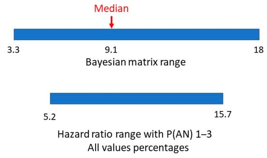 Bayesian matrix and hazard ratio ranges of P(AN|ASD).