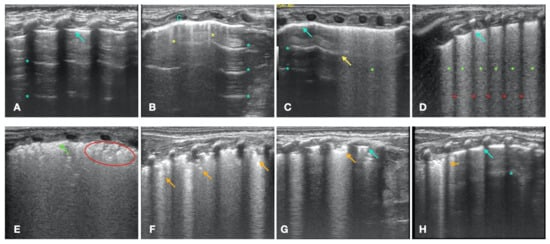 - Copetti, R.; Cattarossi, L. The ‘double lung point’: An ultrasound sign diagnostic of transient tachypnea of the newborn. Neonatology 2007, 91, 203–209. [Google Scholar] [CrossRef]