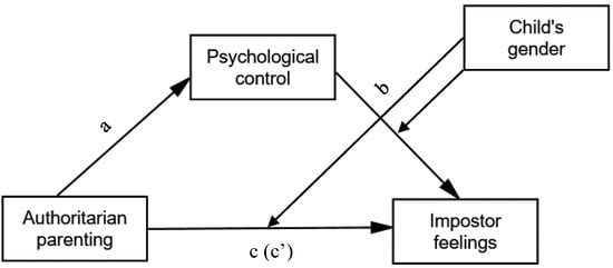 Despite the massive growing interest in the impostor phenomenon during the last decade [], surprisingly little research work has investigated the phenomenon with adolescents [], and most of it not recently. This is especially peculiar given the knowledge about the phenomenon’s familial roots [,] and prior evidence suggesting that impostor feelings in adolescence may be as prevalent and intense as in adulthood [,]. Indeed, the current data about adolescent boys and girls recorded similar rates of impostor feelings in comparison with data reported in previous research with adult students [], with about 36% of the participants reporting experiencing frequent to intense impostor feelings. The present study aimed at reducing this gap in the body of research by testing the association between maternal and paternal authoritarian parenting and impostor feelings among adolescents, while accounting for the mediation effect of parental psychological control and the moderation effect of the child’s gender in this context.