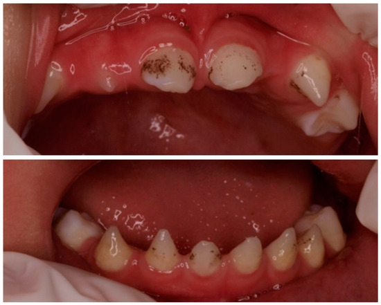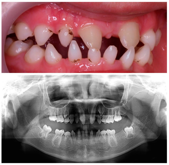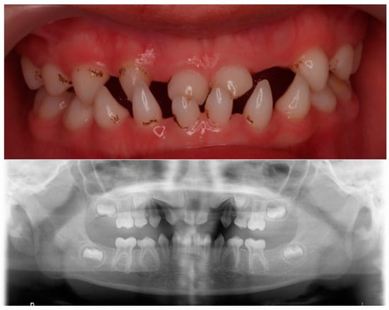 All procedures performed in this study were in accordance with the ethical standards of the institutional and/or national research committee and with the 1964 Helsinki Declaration and its later amendments or comparable ethical standards. Written informed consent was obtained from the parents for publication and for the presentation of clinical and radiographical images (Figure 1, Figure 2, Figure 3 and Figure 4).