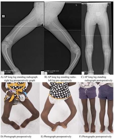 - Wesselsky, V.; Kitz, C.; Jakob, F.; Eulert, J.; Raab, P. Description and evaluation of operative deformity correction in calcium-deficiency rickets in Kaduna, northern Nigeria. Int. Orthop. 2016, 40, 653–658. [Google Scholar] [CrossRef] [PubMed]